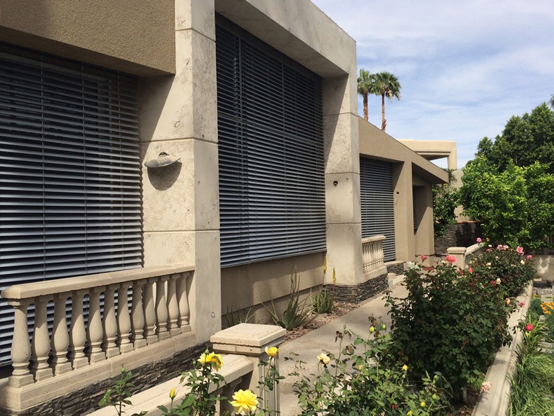 屋外ブラインドは屋内ブラインドとは異なり風によりブラインドが動かないようにすることが必要です。