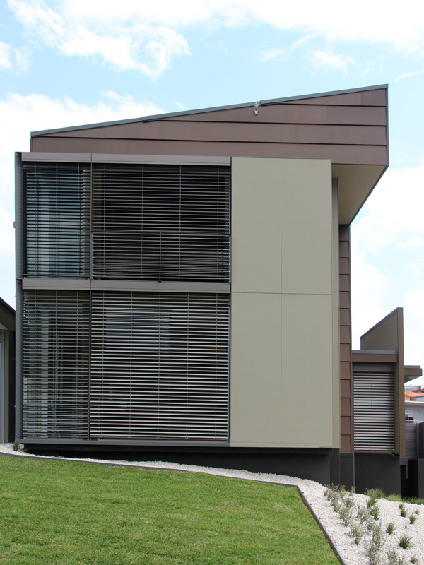 エクスターナルティンバーベネチアンブラインドのヘッドボックスと取付ブラケットは耐錆性と強度を出すために