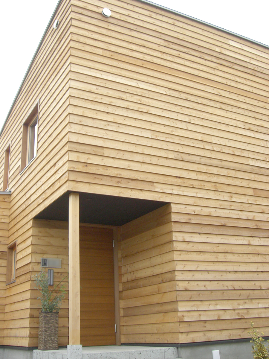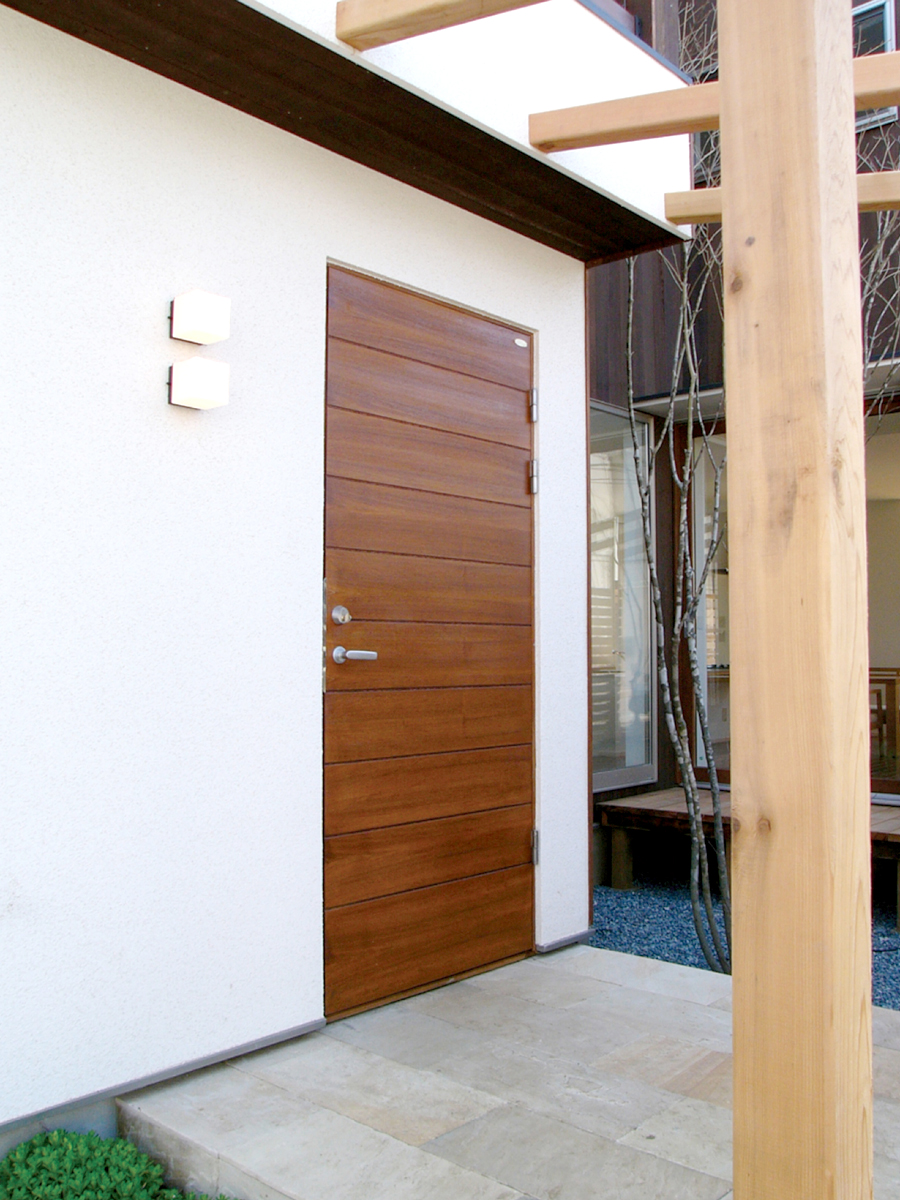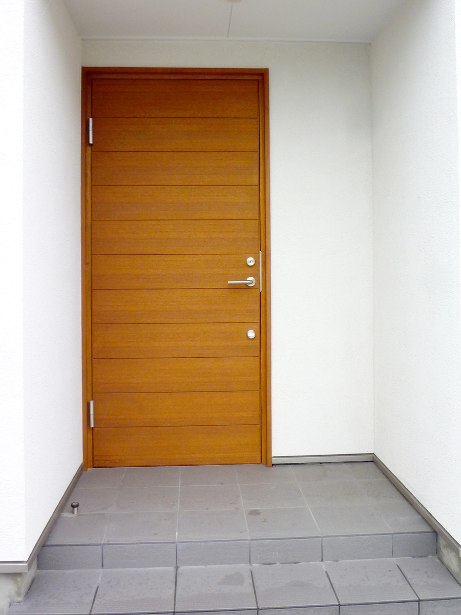 どんなイメージにもすっきりとマッチする、意匠性に優れた木製玄関ドアです。