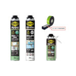 ボード断熱材用接着剤の「PUO10」、木製・輸入樹脂サッシなどのサッシ枠に貼るだけの簡単防水テープ「イルモドトリオプラス」、木製・樹脂サッシなどの下地の動きに追従する1液ウレタンフォーム「インサルエラスティックフォーム」、シロアリの進入を防ぐウレタンフォーム「防蟻フォーム」のご紹介です。