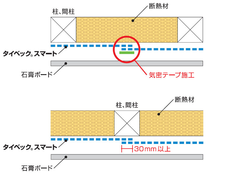 ● タイベック®スマートは外壁下地用透湿防水シートとして使用できません。
