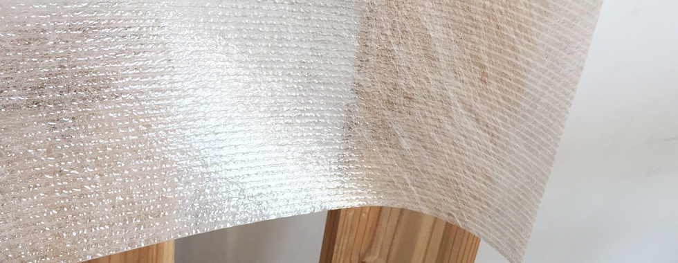 ポリプロピレン不織布は、破れにくく耐久性の高い材料です。そこに湿度条件に応じて変化する特殊樹脂をコーティングを施しています。