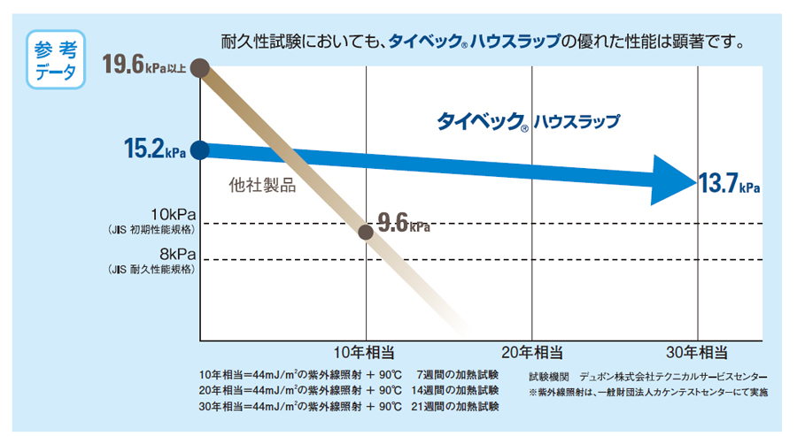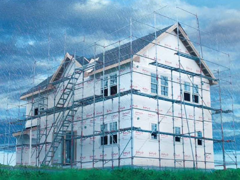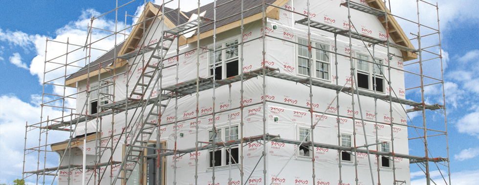高密度ポリスチレン不織布タイベック®を建材用途に使用した住宅外壁下地用の透湿・防水シートです。家の長寿命化に貢献する3つの優れた性能をご紹介します。