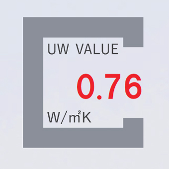 ドイツの省エネルギー条例であるEnEVでは、窓の熱貫流率を1.3W/㎡K以下と定めています。IsoStarの熱貫流率は0.76W/㎡Kを誇り、室内に十分な暖かさをもたらすので、イニシャルコスト、ランニングコストともメリットを感じていただけます。