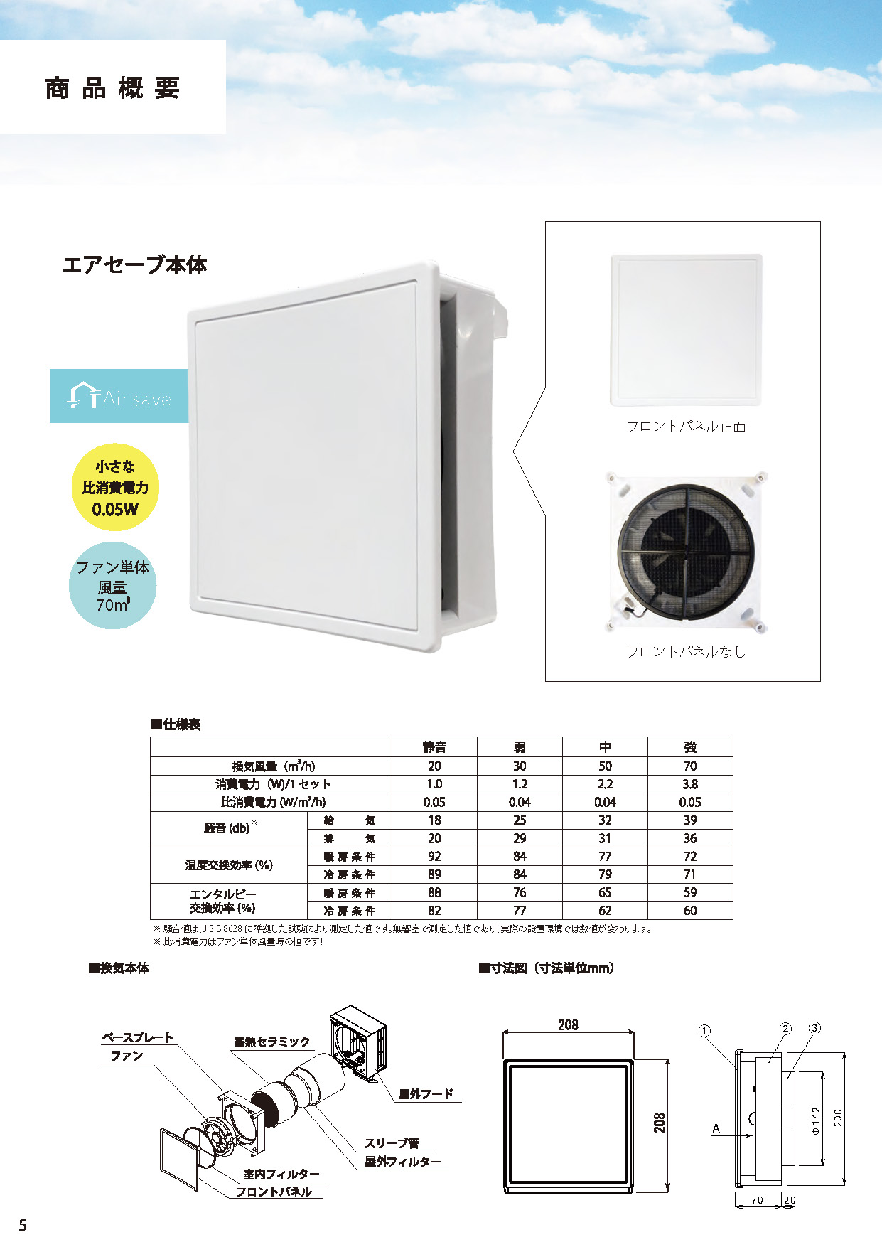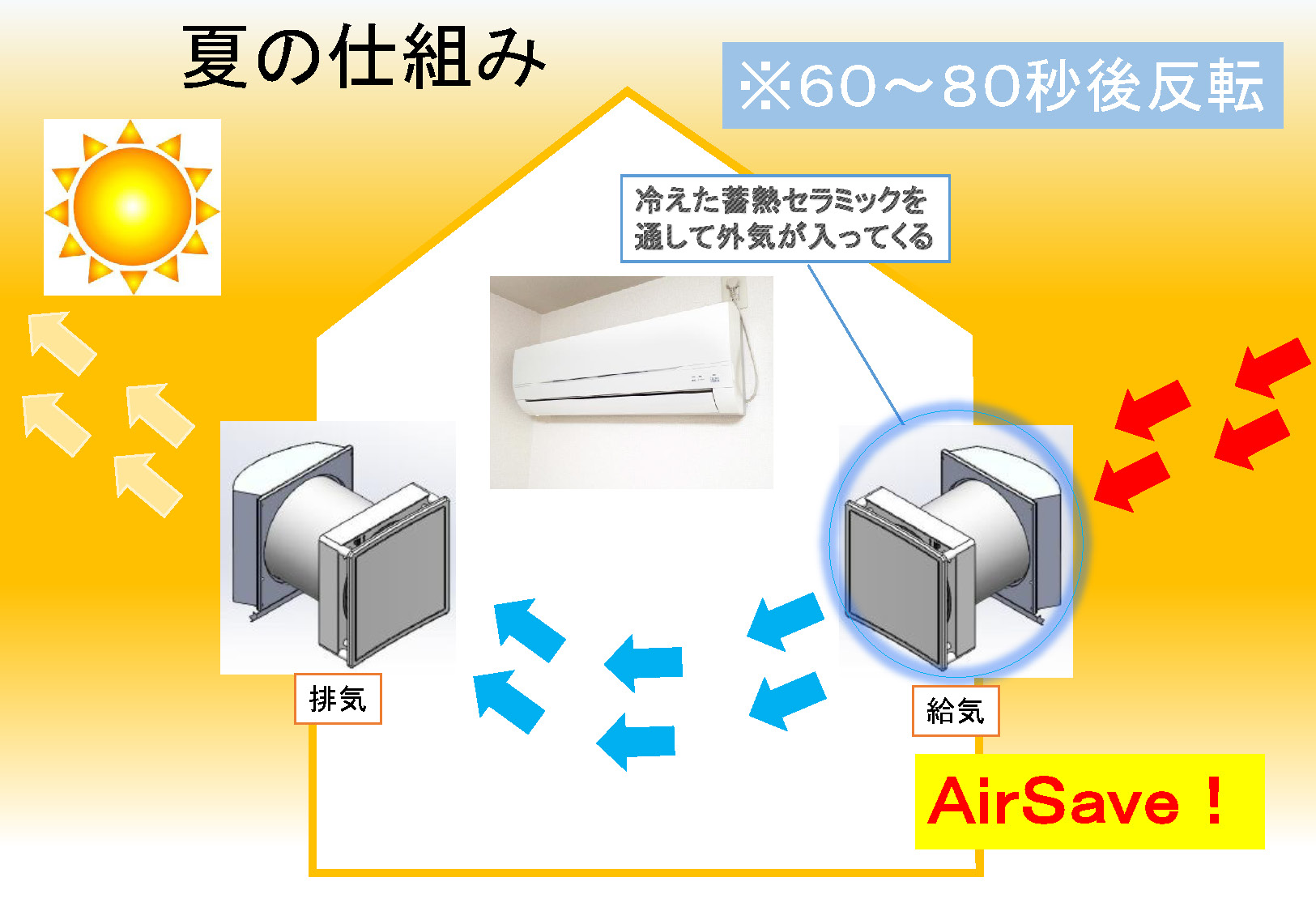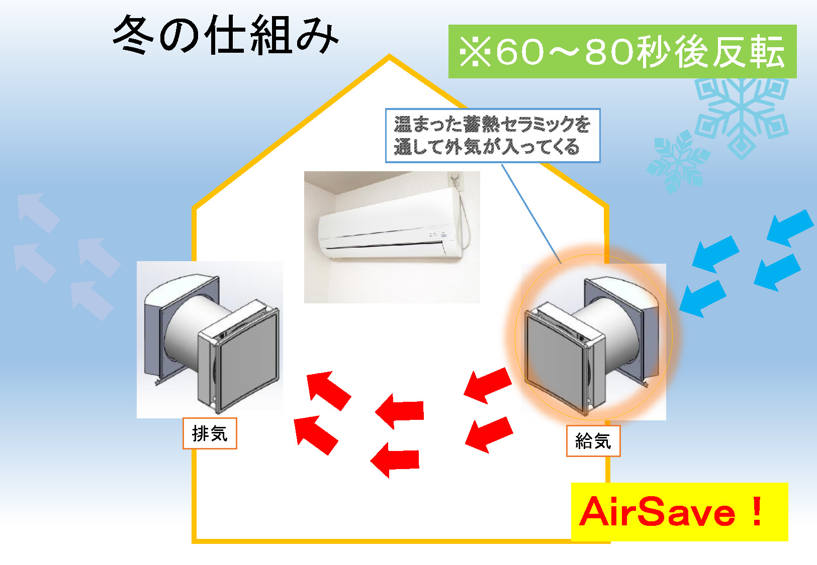 日本の住宅のために設計・開発された、ダクトレス全熱交換型換気システム「Air save®」。