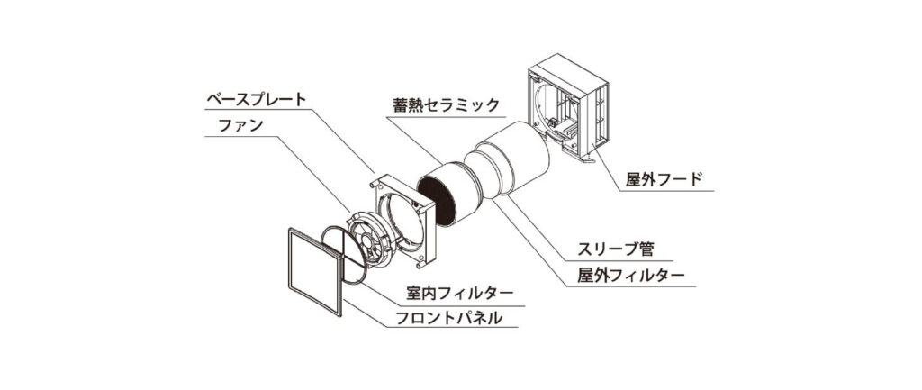 高性能セラミック熱交換素子による優れた給気・排気性能による、地球にも家族にも優しい第1 種換気システムです。