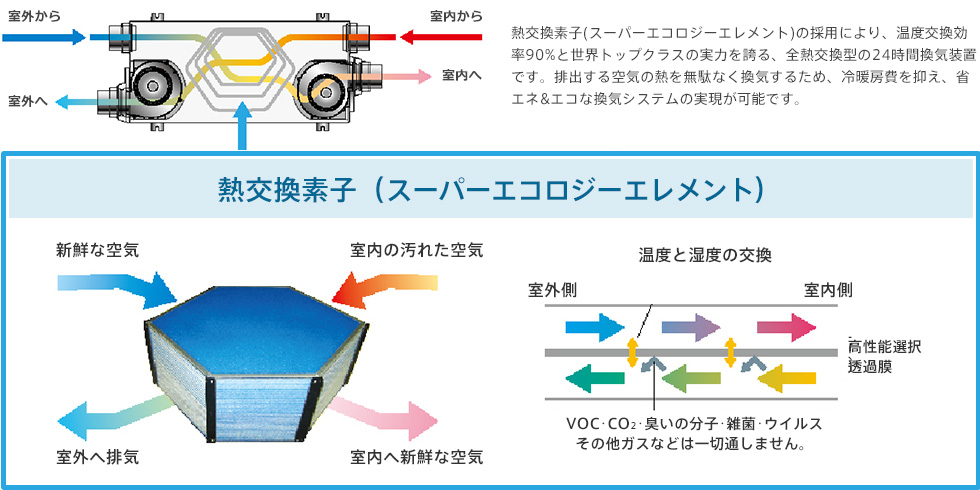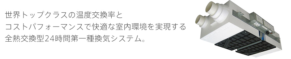 世界トップクラスの温度交換率とコストパフォーマンスで快適な室内環境を実現する全熱交換型24時間第一種換気システム。