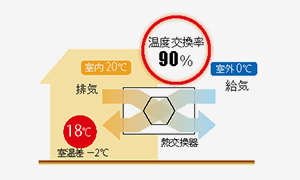 排出する空気の熱を無駄なく換気するため、冷暖房費を抑え、光熱費を節約することができます。